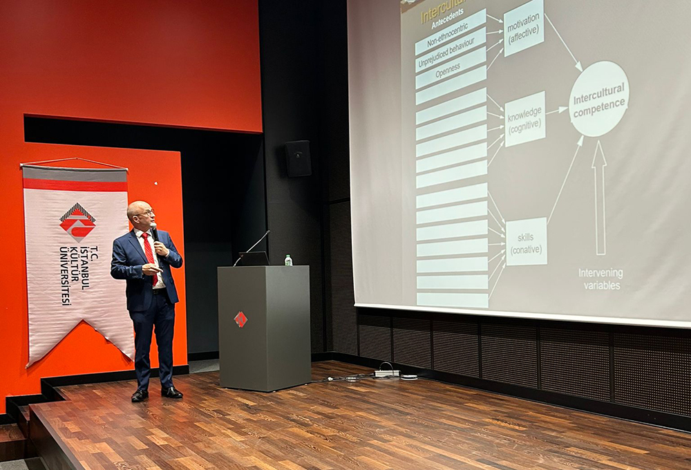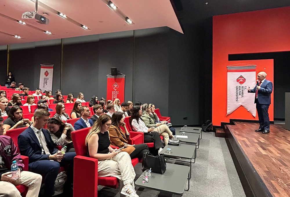 Uluslararası Ticaret ve Finansman Bölümü Açılış Dersi ve Oryantasyon Programı, 22 Eylül 2025 Pazartesi günü Küçükçekmece yerleşkesi konferans salonunda gerçekleştirildi. Etkinliğe konuşmacı olarak katılan DHBW Mannheim Üniversitesi’nden Prof. Dr. Martin Kornmeier, Uluslararası Ticaret ve Finansman alanındaki değerli paylaşımlarıyla Türkçe ve İngilizce bölümlerde okuyan öğrencilerimize ilham verdi.